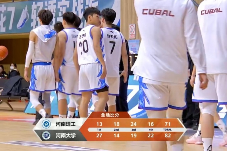 最后一节,河南大学外线三分手感依旧火热,上来就接连命中三分,虽然河南理工依旧努力追分,但河南大学攻势凶猛,一波8-0的高潮将分差拉大到两位数,此后河南理工急于追分但效率并不高,最终河南大学82-71击败河南理工大学。