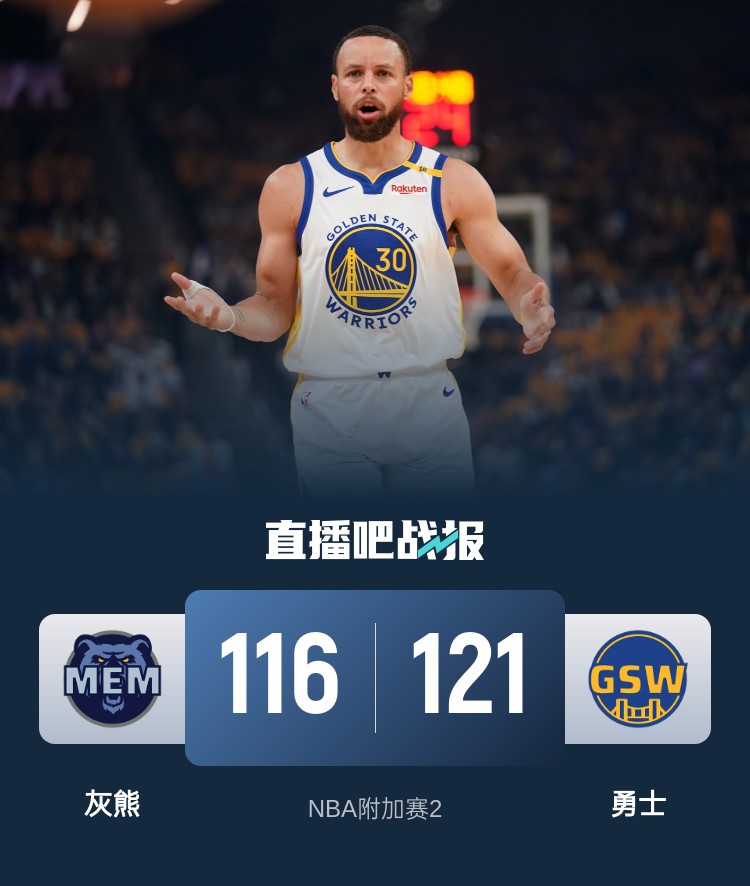 首节之争巴特勒开启季后赛模式首节拿下10分成为先锋官,替补端波斯特和佩顿则成为奇兵联手拿下13分为球队确立起领先;灰熊方面则是三大核心主攻但角色球员缺少稳定输出;次节开局勇士火力全开,勇士4分30秒的时间里送出20-10的攻势并在节中取得最大的20分领先;不过灰熊在莫兰特为首的核心球员连续拿分中回敬16-4的攻势追上比分并带着12分劣势进入下半场。休息归来巴特勒依旧强硬联手库里拿分,但灰熊起势再送11-2的攻势追上比分,莫兰特节末受伤但吃着止疼药上演王者归来,士气大涨的灰熊也在末节开局送上5-0的攻势实现反超;这之后双方进入正式决战得分都很艰难,不过最后时刻还是库里站出来,他两记三分帮助勇士从泥潭中挣扎出来,灰熊最后时刻发球失误直接葬送绝平球权。最终,勇士力克灰熊拿下比赛顺利晋级,勇士的首轮对手将是西部第二的火箭。