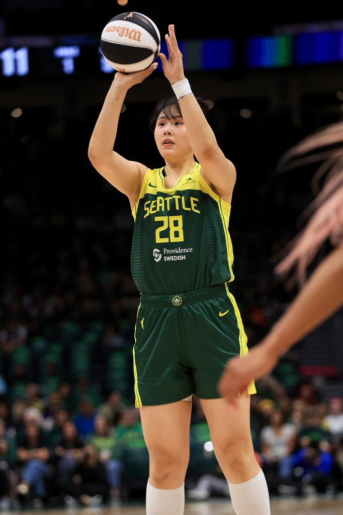 她写道:“上赛季,在为洛杉矶火花队出战的38场比赛中,李月汝场均上场14.4分钟。本赛季,在拥有众多前场天赋的西雅图风暴队中,她的数据略有下降。风暴队前场的上场时间主要由埃兹-马格贝戈尔(场均出战28分钟,得7.1分)、李月汝(场均出战9分钟,得2.9分)和新秀多米尼克-马隆加(场均出战8.8分钟,得4.3分)占据。”