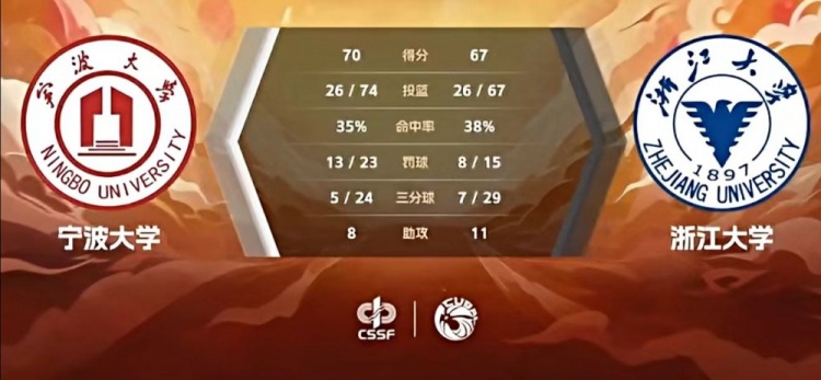 末节,贾亦杰上来手感依旧连得5分,章海波带队依旧紧追不舍,李一帆射中三分追到只差2分,丁小峰突破上反篮得手止血,李一帆和章海波联手再得5分帮助宁波大学完成反超,浙江大学进攻无法打开局面,最终,宁波大学70-67逆转浙江大学。