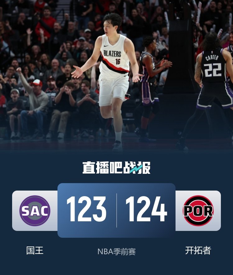 季前赛-杨瀚森第三节5中5全场新高16分4板3帽 开拓者险胜国王