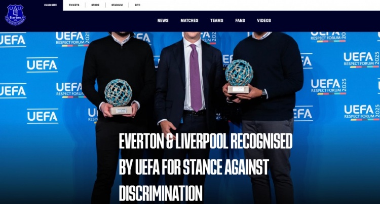 埃弗顿与利物浦联合反对种族歧视,获2025年欧足联FootbALL奖