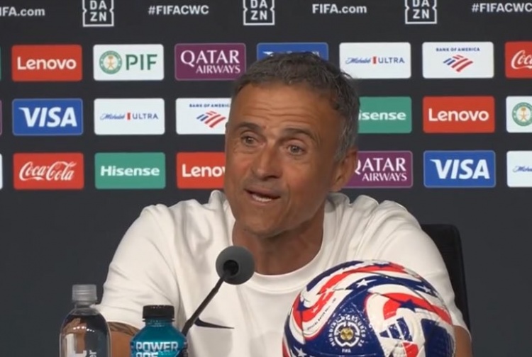 6月29日讯 巴黎圣日耳曼将在世俱杯1/8决赛对阵迈阿密国际,赛前,巴黎主帅恩里克出席新闻发布会。