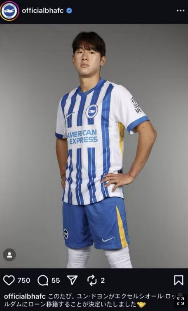布莱顿官方宣布18岁韩国边锋尹棹泳租借加盟荷兰俱乐部SBV精英,但官宣内容用日语发布,遭到球迷投诉之后,布莱顿删除了相关内容,改用英语发布官宣。
