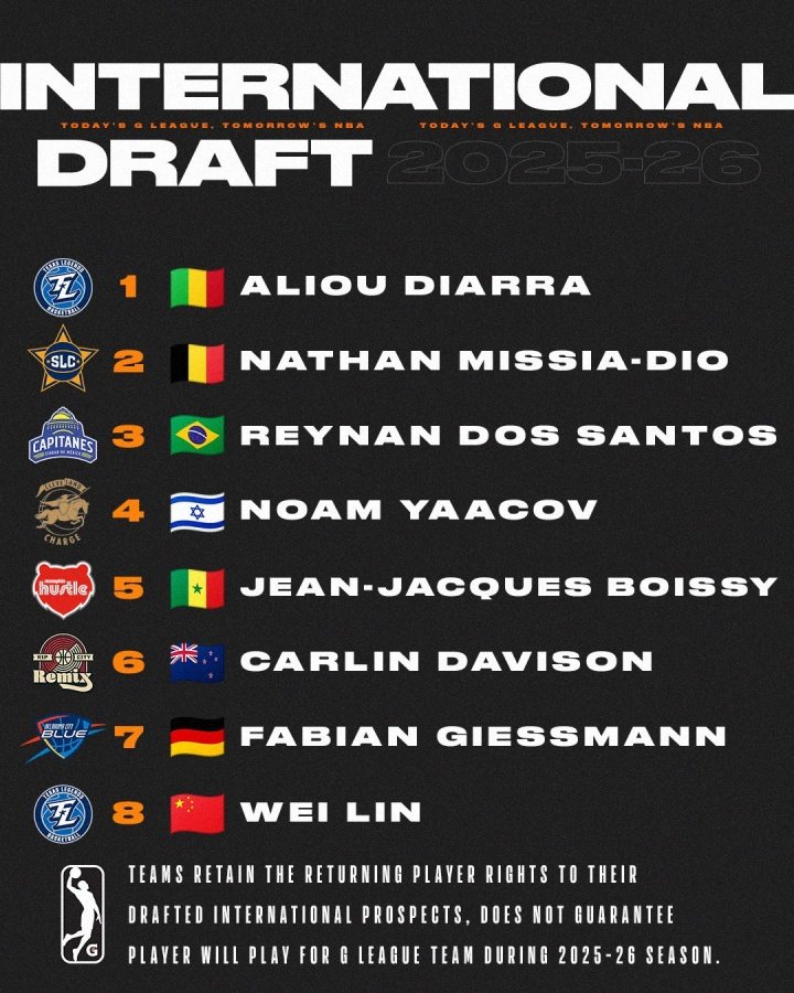 NBA G联盟国际球员选秀:林葳第8顺位被独行侠下属球队选中!