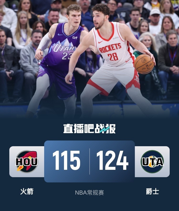 小乔治替补30分 申京27+12+7 火箭末节崩盘惨遭爵士逆转