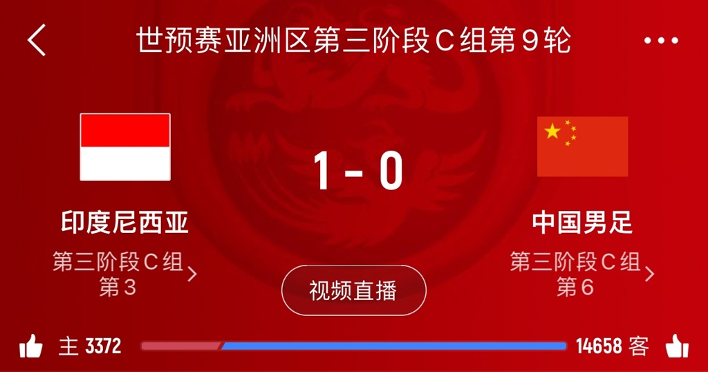 10月15日,中国男足2-1印度尼西亚