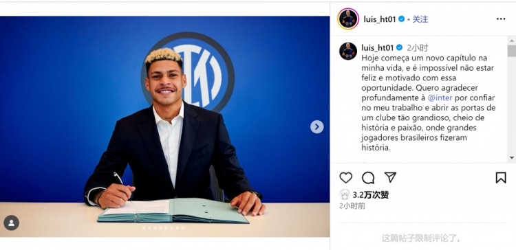 6月8日讯 国米官方宣布,马赛边锋路易斯-恩里克加盟球队,恩里克社媒晒出与国米签约的照片,谈到了加盟国米的感受。
