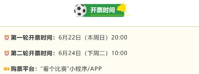 本轮赛事实行实名制身份证件核验入场,观众凭本人身份证原件,于6月29日17:00开始检票,19:00正式开赛(具体以现场实际为准)。