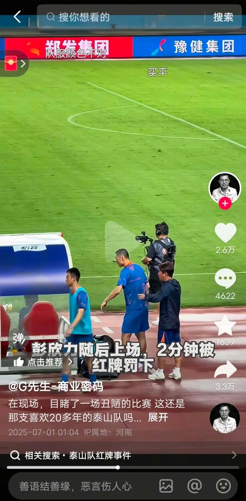 回应彭欣力"电话门"!泰山官方:视频恶意拼凑剪辑 俱乐部强烈谴责