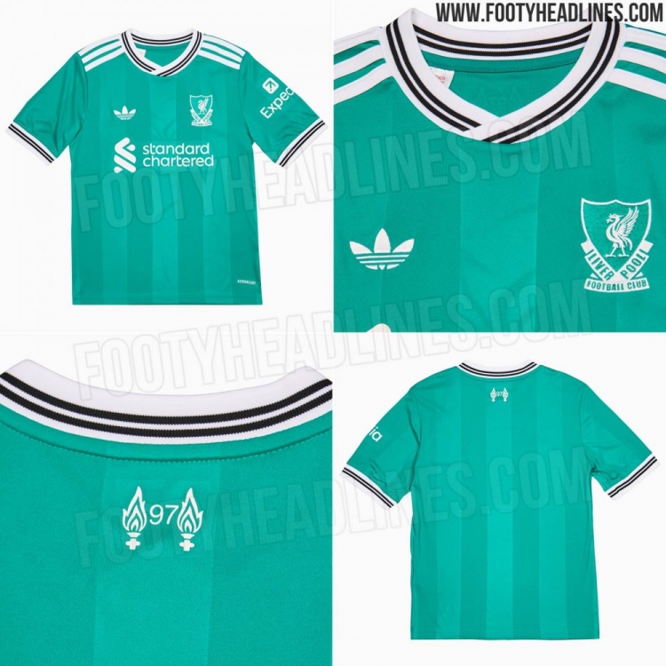 利物浦2025/26赛季第三球衣:薄荷绿主色调,队徽复刻1987/92款式